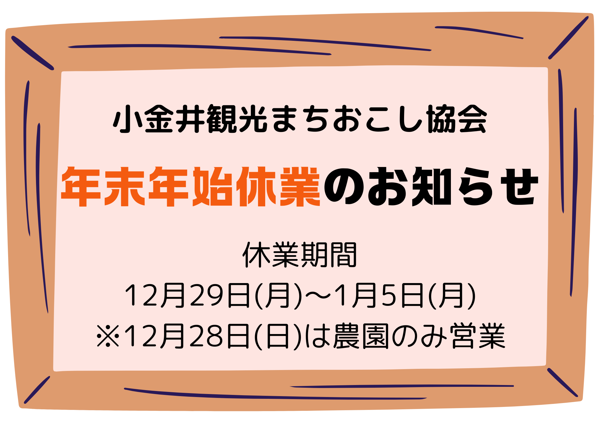 年末年始休業のお知らせ