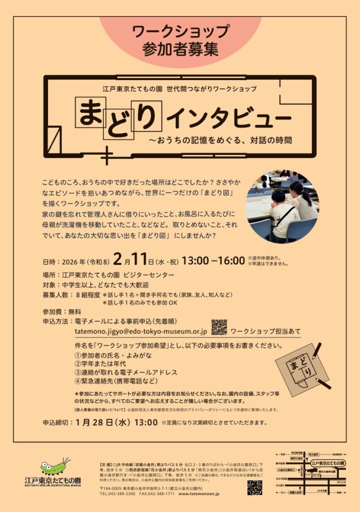 【江戸東京たてもの園】世代間つながりワークショップ「まどりインタビュー」~おうちの記憶をめぐる、対話の時間