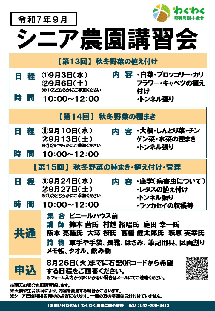 シニア農園 第13・14・15回講習概要