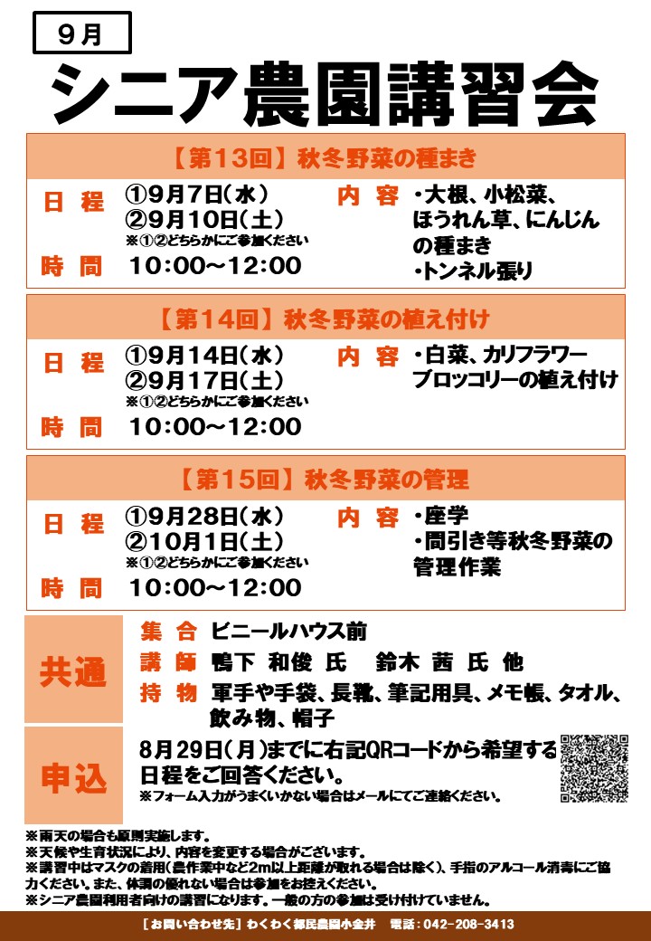 シニア農園ー第13・14・15回講習概要