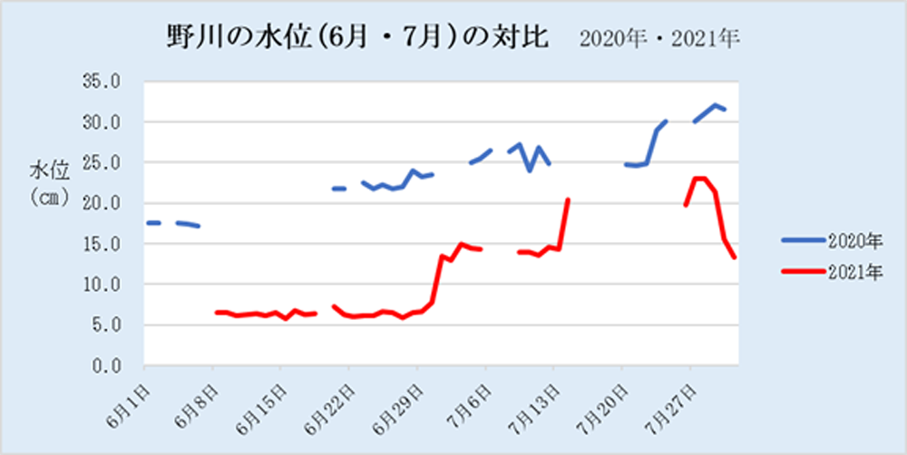 Vol.2010 今年(2021年)の梅雨時(6月・7月)の雨と野川の水位