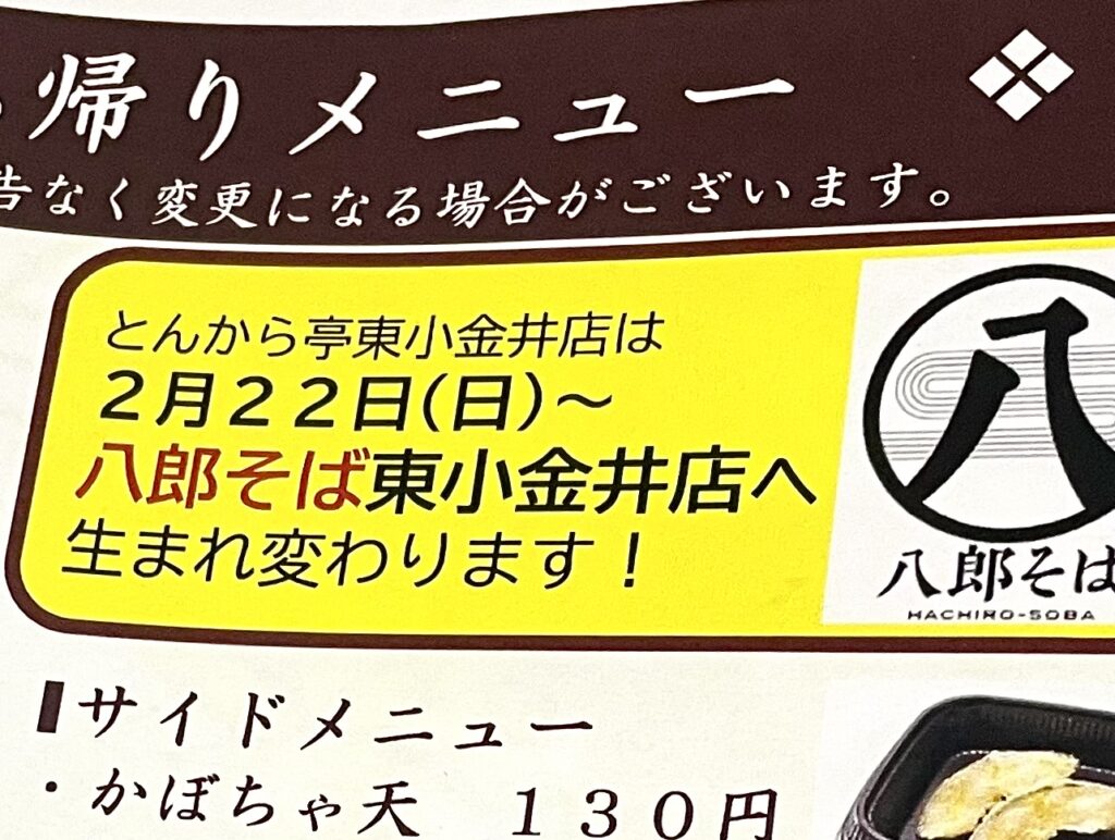 グルメ・お店 - Vol.4232 とんから亭は2月22日八郎そばへ生まれ変わります!クーポンチラシをいただきました!